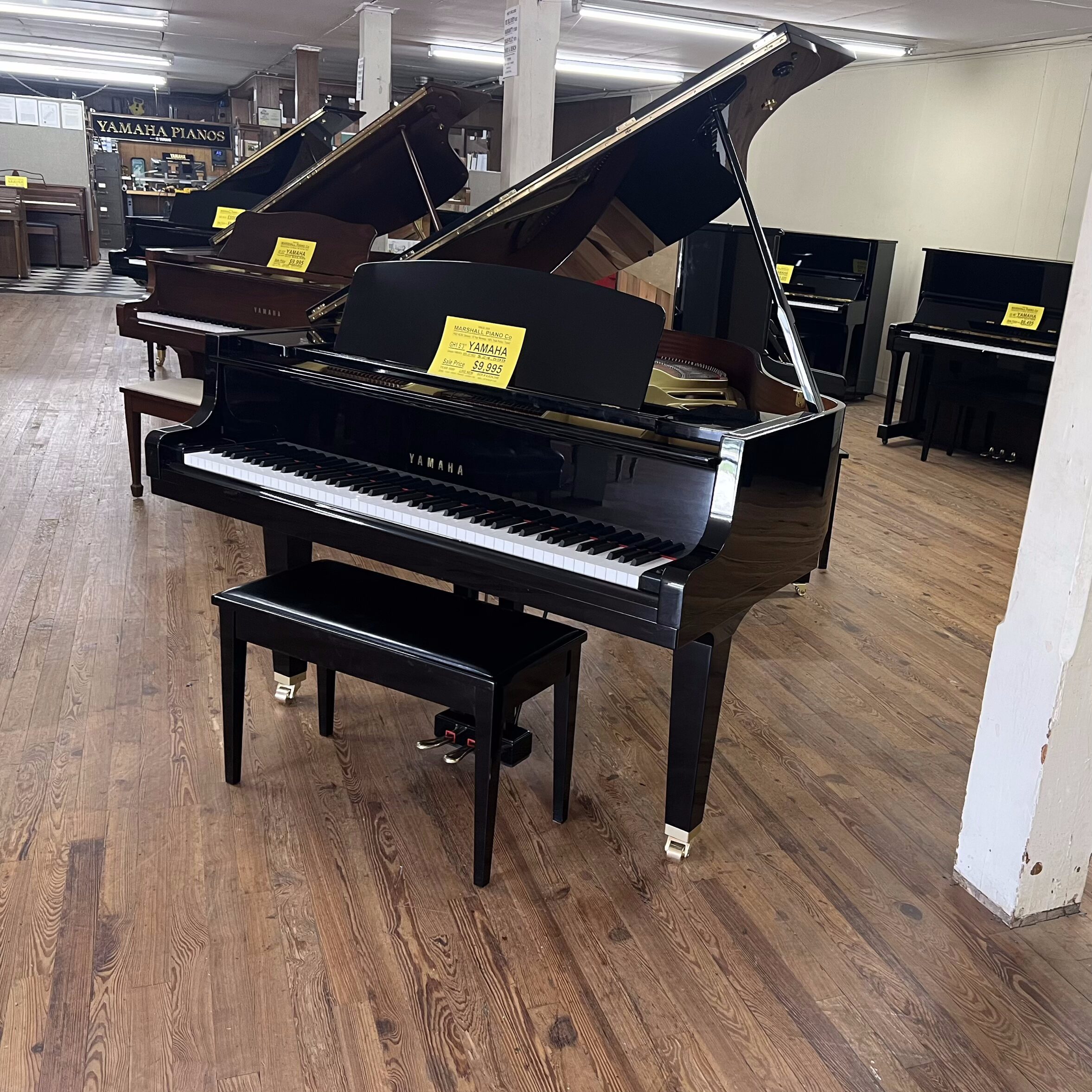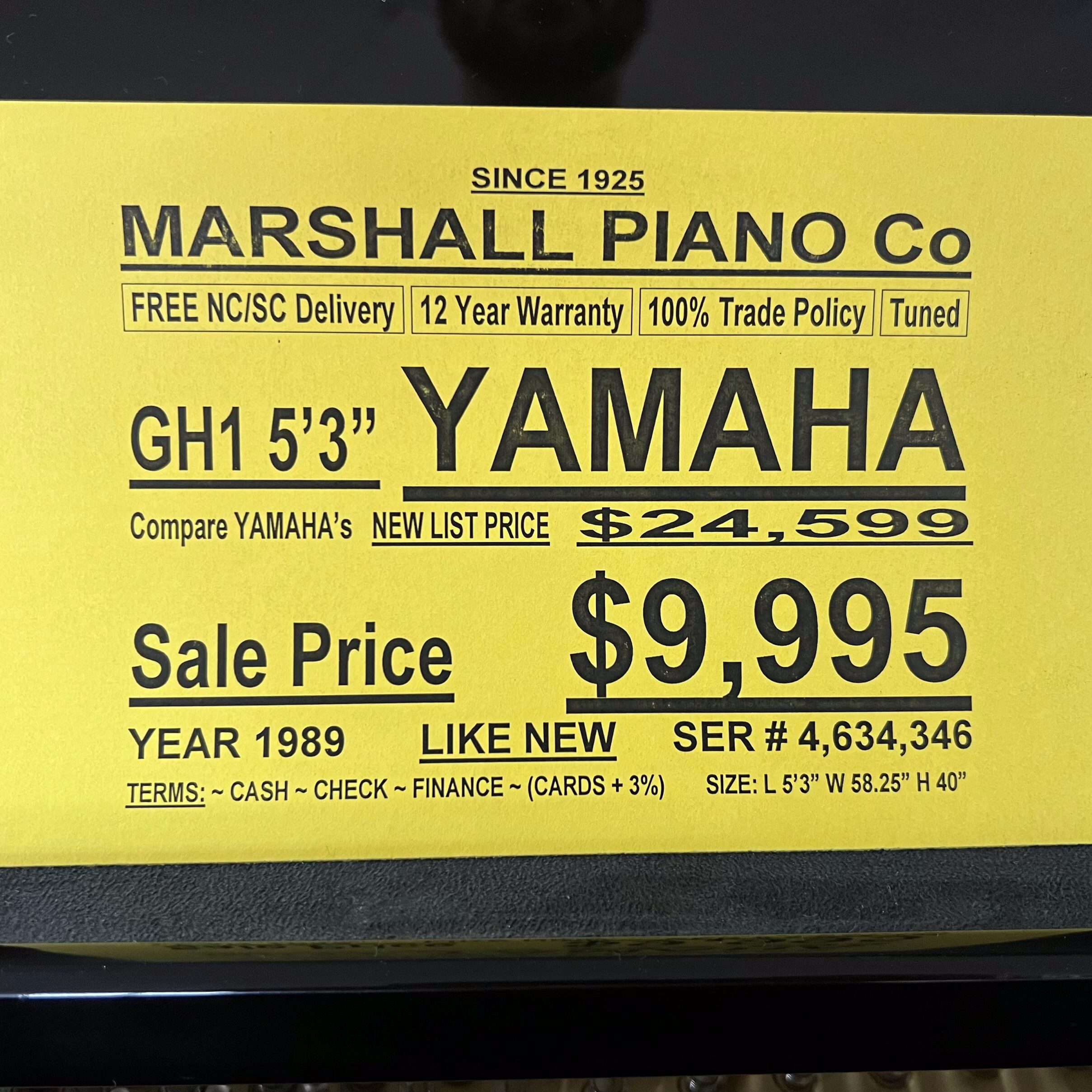 A 1989 Yamaha GH1 Baby Grand that is 5’3″ in length and comes in a beautiful polished ebony finish.